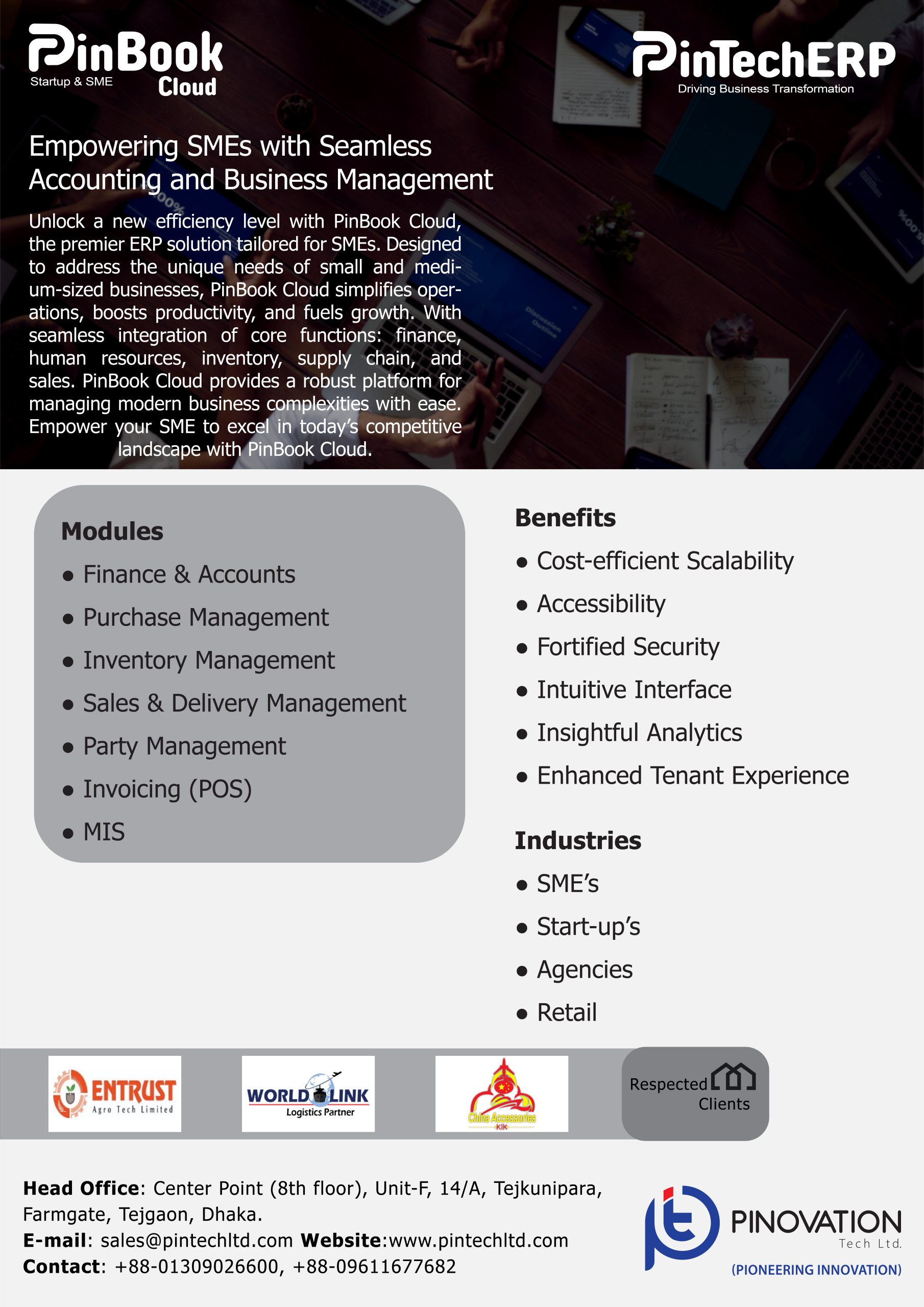 Experience the next level of business efficiency with PinBook Cloud, the ultimate SME Business ERP solution by Pinovation Tech Ltd. Crafted to meet the distinct demands of small and medium-sized enterprises, PinBook Cloud is your gateway to streamlined operations, enhanced productivity, and unparalleled growth. Seamlessly integrating essential business functions like finance, human resources, inventory management, supply chain management, and sales, PinBook Cloud offers a comprehensive platform to navigate the complexities of modern business effortlessly. Empower your SME to thrive in today’s competitive landscape with PinBook Cloud.